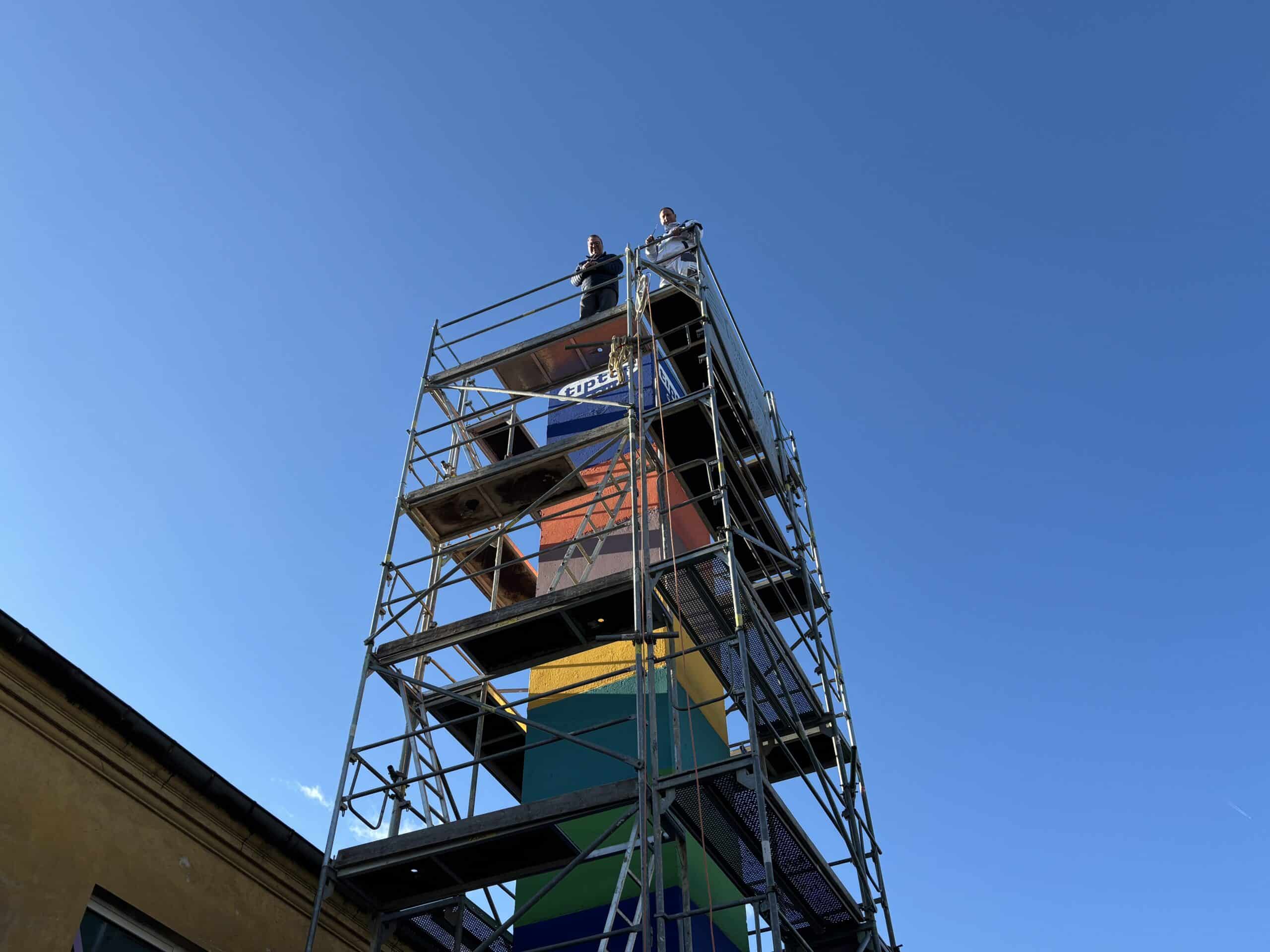 „Die Farben haben wir unserem tiptop-Credo angepasst und wenn das Dachblech den Schornstein sicher abgeschlossen hat, werden Elektriker noch für die Beleuchtung analog dem Chemnitzer sorgen. Niederlassungsleiterin Jana Fischer und ihre 18 Mitarbeiter vor Ort freuen sich auf jeden Fall über die neue Reichenbacher Sehenswürdigkeit“, so tiptop-GROUP-Regionalleiter Robert Klein.