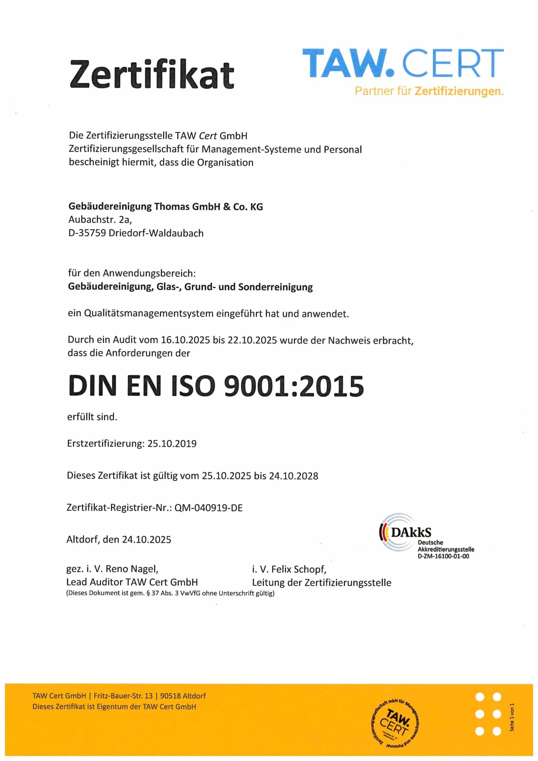 Wir garantieren über unser Qualitätsmanagement-System, dass alle miteinander verknüpften Tätigkeiten erkannt, gelenkt und geleitet werden. Für jeden einzelnen Mitarbeiter bedeutet dies, dass seine Tätigkeiten umfänglich beschrieben sind. Die für die Erfüllung der Aufgaben benötigten Schulungen wurden absolviert. Sollten unerwartet Fehler passieren, liegen den Mitarbeitern detaillierte Anweisungen vor, wie Fehler behoben werden und zukünftig nicht mehr geschehen.